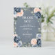 Cartão de agradecimento de casamento floral geométrico azul empoeirado com buquês elegantes de azul escuro / azul empoeirado, branco, rosa choque, rosa pêssego e folhas de eucalipto verde sálvia e moldura geométrica neutra com brilho elegante. Por favor, entre em contato para qualquer ajuda na personalização ou se precisar de qualquer outro produto com este design.