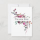 O cartão de agradecimento de casamento retrata um jardim floral elegante pintado à mão em aquarela com tons de flores rosa e roxas, ervas, galhos e folhagens. A mensagem de agradecimento pode ser personalizada ou excluída para uma nota manuscrita e usada em diversas ocasiões.