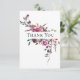 Cartão De Agradecimento Casamento Floral Verde com Aguarela Roxa Rosa