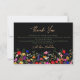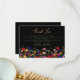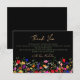 Adicione um toque de elegância boêmia ao cartão de agradecimento com nosso design de flores silvestres coloridas e elegantes Modernas Chic Boho. Com tons rosa, vermelho, verde e roxo, flores botânicas inspiradas em flores silvestres e jardins rústicos aquarela com folhagens sutis e tipografia moderna boho em fundo escuro