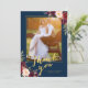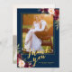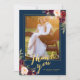 Cartão De Agradecimento Casamento Foto Azul Marinho Dourado Floral Borgonh