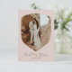 Um design elegante com uma assinatura moderna manuscrita com a sua foto de casamento de agradecimento inserida numa moldura em forma de escudo contra um fundo bege cor de rosa. Personalize facilmente a frente e o verso do cartão com a mensagem que você pode usar ou editar de acordo com as suas especificações.