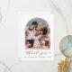 Mínimo cartões de agradecimentos de casamento para recém-casados com sua foto em um quadro arquitetônico moderno, "obrigado você" em um roteiro elegante e seu nome e data de casamento de Sr & Sra. em uma simples tipografia. Ao contrário, você pode personalizar um obrigado que você envia e adicionar seus primeiros nomes como uma assinatura.