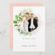 Cartão de agradecimento de casamento em aquarela com elementos de rosé dourado e rosa bege em uma moldura de cristal geométrico com verdura trendy.