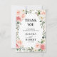 Cartões de agradecimentos botânico floral Elegante, cor-de-rosa-pincel/primavera de pêssego, apresentando um buquê de rosas de aquarela pastel macio, peônias e hífenes em tons de rosa-pincel, pêssego e creme com folhas botânicas verdes e folhas de eucalipto com estrutura geométrica de ouro. Por favor, encontre mais designs e variações na minha loja de "blisswedingpaperie". E fique à vontade para me contactar para mais personalizações ou itens correspondentes.