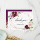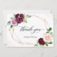 Cartão De Agradecimento Casamento Geométrico Moderno Floral com Blush Roxo