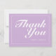 O cartões de agradecimentos de casamento bonito, moderno, minimalista e moderado apresenta um fundo púrpura macio e pastel (2022 coleciona "Orchid Bloom" de Pantone) com blocos de texto personalizáveis brancos em fontes modernas