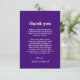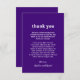 Cartões de agradecimentos de casamento de estilo moderno com um layout simples e mínimo com "obrigado você" em uma fonte retrógrada e com sua mensagem personalizada. O esquema de cores brilhantes é um tom de joia vibrante roxo e branco. Este cartões de agradecimentos de casamento não fotográfico é excelente para um casal recém-casado que quer um cartões de agradecimentos sem fotos. Ou, se preferir, pode adicionar uma fotografia à parte de trás, bem como alterar as fontes/cores na ferramenta de edição de design