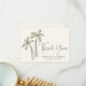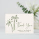 Diga obrigado com um toque suave e natural usando este cartões de agradecimentos de casamento tropical. As palmeiras verdes desenhadas à mão pop contra um fundo creme, com "Obrigado" escrito num guião fluido. Os casais podem adicionar seus nomes e data de casamento à frente e incluir uma mensagem personalizada na parte traseira, fazer-a ideal para o verão, destino ou casamentos à beira-mar.