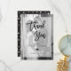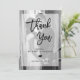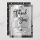 Este cartões de agradecimentos de casamento moderno e na moda apresenta sua própria foto cobrindo completamente o fundo. Uma camada branca apresenta a tipografia de script preto moderno.