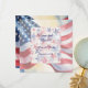 Uma pintura em aquarela da bandeira americana ondulando contra um fundo suave e etéreo. A bandeira é representada com pinceladas soltas e fluidas que mostram as listras vermelhas e brancas e o campo azul com estrelas brancas. As listras são pintadas com larguras variadas e variações sutis de cor, criando um movimento dinâmico através da tela. As estrelas são representadas em um estilo impressionista solto, com bordas suaves. O fundo apresenta suaves lavagens de aquarela azul e amarelo que se misturam, criando uma atmosfera sonhadora. A bandeira está posicionada diagonalmente na composição, com o canto superior esquerdo levando para baixo em direção ao canto inferior direito. O estilo de pintura enfatiza o movimento e a textura do tecido da bandeira, com marcas de pincel visíveis e pintura sangrando, típico da técnica de aquarela. A paleta de cores geral consiste em tons de azul profundo, vermelho brilhante, branco puro e amarelo suave, todos renderizados em um