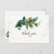 Cartão De Agradecimento Casamento no inverno Dourado Vermelho Evergreen