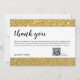Casamento Obrigado modelo cartões de fotos com texto falsa em folha de ouro que diz obrigado você. dupla face com código QR personalizado para álbum de fotos online.