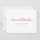 Este simples modelo de cartões de agradecimentos de casamento chic apresenta uma aparência moderna e nítida. A forma padrão é cantos nítidos padrão, mas cantos arredondados também funcionam bem com este design, então verifique se olha e veja qual estilo o agarra! Demos a esta design minimalista um salto de pântano com 'amor e obrigados em uma fonte moderna fluente e realçamos em uma elegante sombra de burgundy que consegue ser elegante e vivo ao mesmo tempo. Adoramos o florescimento estilizado e alongado em ambas as extremidades da design. Você pode facilmente editar o texto de acordo com o seu gosto pessoal, e também pode alterar a fonte e a cor do texto. Você poderia, por exemplo, escolher outro formato para seus nomes, como 'Sr. e Sra......" ou seus primeiros nomes e sobrenomes, etc. Ou você pode mudar a cor do roteiro 'amor e obrigados' ou o texto abaixo dele. Escolhemos preto e cinzas como as cores padrão para os nomes e texto de data na frente, e uma cinza para o texto na parte traseira. Colocamos um exemplo de texto na parte de trás para que você substitua por sua própria mensagem quando você vê ajustado. Mas, por favor, não se sintam restringidos por isto. Se preferir eliminar o nosso texto de amostra e, em seguida, manter a parte de trás totalmente vazio para que possa escrever uma nota manuscrita em cada cartão, pode fazê-lo. Ou talvez você queira substituir nosso texto por sua própria mensagem de gratidão e seu próprio fechamento e então assinar seus nomes quando você receber os cartões. Ou você pode mudar a fonte deste texto, ou mudar a cor, ou usar preferencialmentes de maiúsculas e minúsculas que a aparência de maiúsculas que escolhemos para o texto de amostra no verso. Em qualquer caso, certifique-se de que o nosso texto de amostra/espaço reservado está apagado em ambos os lados do cartão! O plano de fundo padrão na frente é transparente para que a cor do papel sirva simplesmente como tom base. Na parte de trás, escolhemos uma matiz de fundo que não é bem branca, é uma cinza muito clara chamada Fumaça Branca. Você pode mudar isso escolhendo outra cor nas ferramentas de edição, ou talvez queira torná-la transparente como ela está na frente. Esperamos que você goste de experimentar vários aspectos da aparência desta carta de acordo com o seu gosto e a torne exclusivamente sua com as ferramentas intuitivas de design e sua inspiração. E, por favor, navegue na nossa obrigado de casamento... para uma seleção de casamento elegante e moderno, obrigado, cartas!