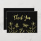Cartões de agradecimentos de casamento simples e único com flores de ouro românticas e elegantes em fundo preto PARA MAIS PRODUTOS CORRESPONDENTES clique na coleção acima ou entre em contato comigo.