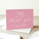 Expresse sua apreciação em estilo com este cartões de agradecimentos chic de casamento mostrando um arco branco desenhado à mão e "Obrigado" em elegante caligrafia contra um fundo cor-de-rosa de rosa mole. Personalize a frente com seus nomes e data de casamento para uma lembrança duradoura de sua celebração. Dentro, o cartão dobrado oferece espaço para sua nota pessoal de obrigados, permitindo que você compartilhe verdadeira gratidão com a família e os amigos. A rosa romântica paleta cor-de-rosa e branca faz desta design uma bela escolha para coleções clássicas, femininas ou modernas de artigos de papelaria de casamento.