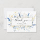 Cartões de agradecimentos de casamento floral azul e amarelo com cor de água empoeirada, com flores silvestres pintadas com cor de água em azul, marinho e amarelo empoeirado, com roteiro de caligrafia moderno e estrutura de folha de ouro digital. Trabalho de arte de aquarela original. Cartões de agradecimentos de casamento floral elegante e moderno de aquarela. Uma parte de uma suíte de casamento completa. Vá para Personalizar link Adicional para alterar a fonte, o tamanho e a cor.