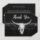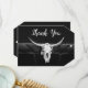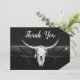Este estilo de etiqueta de presente de cartões de agradecimentos liso apresenta um crânio rodeado de vaca branco e preto russo, tema de casamento rodeio do país ocidental. Farmhouse style, antiga antiga antiguidade selvagem ocidental. design de animais legal, modernos, modernos e de fazenda. Imagem copyright Marg Seregelyi Fotografia.