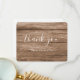 Cartão de agradecimento rústico campestre com uma madeira rústica e uma fonte de letra moderna. Personalize facilmente este cartão de agradecimento para um casamento, chá de noiva, aniversário ou outra ocasião.