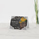 Cartões de agradecimento country elegantes com um fundo de quadro-negro preto rústico, decoração de canto de renda de noiva, luzes cintilantes de corda, girassóis amarelos dourados de verão, um barril de madeira de adega com suas iniciais e um pedaço de corda amarrada.