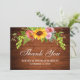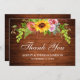 Cartão De Agradecimento Casamento Rústico Floral de Girassol de Madeira