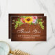 Cartão de Agradecimento Floral de Girassol de Madeira Rústica para Casamento com Rosas, Peônias e Folhagens