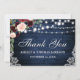 Casamento Azul Rústico Madeira Aquarela Borgonha Marsala Azul Floral Luzes de Corda Renda Cartão de Agradecimento