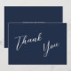 Cartões de agradecimentos de Casamento Simples Azul e Branco do Marinho Elegante
