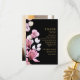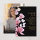 Um elegante cartão de agradecimento de funeral preto e dourado decorado com flores rosa é personalizado com sua própria mensagem de agradecimento e uma foto do ente querido no verso. Criado por Thisisnotme©