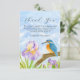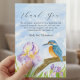 Este cartão de agradecimento memorial apresenta um vibrante martim-pescador descansando entre íris roxas e brancas suavemente onduladas, pintado de forma delicada em um estilo solto de aquarela. O design sereno da natureza reflete calma, esperança e força tranquila, oferecendo uma maneira graciosa de expressar gratidão durante um momento terno.