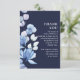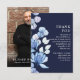 Um elegante cartão de agradecimento de funeral azul-marinho decorado com flores azuis é personalizado com sua própria mensagem de agradecimento e uma foto do ente querido no verso. Criado por Thisisnotme©