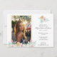 Simples e elegante, este elegante design floral é a forma perfeita de honrar os recém-desaparecidos durante um almoço ou uma celebração jante do serviço de vida. Apresenta uma estrutura dourada em volta da modelo de imagem do recém-partido na frente junto com flores de aquarela pastel. A parte de trás apresenta uma cor de cinza escura. Todas as cinzas e tipografia branca podem ser mudadas para ajustado de seus detalhes memoriais. Substitua o modelo de foto por sua própria cor ou preto e branco para personalizar.