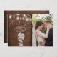CARTÃO DE AGRADECIMENTO COM FOTO | Adicione sua Foto - Uma versão atualizada de um antigo favorito, nosso tema de casamento de jarra de alvenaria com luzes de corda rústicas, apresenta madeira antiga, luzes de corda com vagalumes, uma jarra de alvenaria repleta de flores de bebê branca e ervilhas doces que brilham com a luz dos vagalumes. Uma combinação de caligrafia cursiva com um layout de texto minimalista e contemporâneo torna-o um conjunto de casamento de estilo tendência. Arte original criada para TheBarefootBride™ por © WhimsicalArtwork™. Este é parte de uma coleção de conjuntos de papelaria de casamento com acessórios de casamento correspondentes e também papelaria para chá de bebê e outras ocasiões. Sinta-se à vontade para entrar em contato conosco se precisar de ajuda.