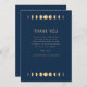 Adicione um toque de elegância cósmica ao seu evento com nosso Cartões de agradecimentos Celestial de Casamento. Mergulhe na simplicidade encantadora do nosso design, refletindo a magia mesmerizante dos corpos celestes. Nossa tendência, mas eterno, mostra uma série de fases da lua articamente rendidas em ouro num fundo azul-marinho impressionante. Este toque de ouro acrescenta uma dica de calor e encanto revoltante à legal base azul da meia-noite, melhorando ainda mais o atrativo da peça. A design mantém uma abordagem minimalista, permitindo que os elementos celestes brilhem verdadeiramente. Você pode personalizar facilmente para atender às suas necessidades, garantindo que cada peça ecoe seu estilo exclusivo.