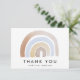 Cartões modernos de agradecimento com arco-íris em aquarela em tons de marrom, azul e dourado com "Obrigado" exibido abaixo em letras pretas. Personalize o cartão de agradecimento do arco-íris adicionando seu nome ou texto personalizado. O verso do cartão está em branco com muito espaço para sua mensagem de agradecimento digitada ou manuscrita. O cartão de agradecimento do arco-íris em aquarela é perfeito para usar em chás de bebê, festas de aniversário e muito mais!