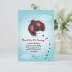 Esses cartões de agradecimento fazem parte do conjunto correspondente para um chá de bebê "Uma Pequena Joaninha Está a Caminho!". As cores são azul, branco e vermelho. Com um fundo vermelho no verso, com bolinhas pretas para representar uma joaninha. A frente tem um céu e nuvens com uma joaninha voando. Muito fofo, simples e bem desenhado para um chá de bebê.