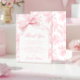 Embrace a elegância do eterno com nosso cartões de agradecimentos pré-filhote de menina francesa, mostrando uma charmosa fita de arco rosa contra um padrão floral inspirado na vintage e uma arca de boho. Este cartão sofisticado é a maneira perfeita de expressar sua gratidão com um toque de estilo clássico, fazer-o como um complemento ideal para a sua na moda e refinada celebração do chá da menina.