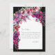 Faça uma declaração com este impressionante cartão de agradecimento para chá de noiva em aquarela com flores, apresentando vibrantes flores fucsias e lavandas contra um fundo preto ousado. A incrível arte em aquarela adiciona um toque de elegância e sofisticação a este já belo design. Peça agora e prepare-se para realizar um chá de noiva verdadeiramente inesquecível! Parte da coleção 'Chá de Noiva Fuchsia e Lavanda'. Para personalizar este design, clique no botão "Personalizar este modelo".