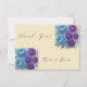 Um deslumbrante design de convite de casamento que apresenta elegantes peônias Lyons Blue em aquarela combinadas com rosas Fig Purple ricas e folhagens suaves. A paleta de cores ousada e romântica torna este design ideal para casais que buscam um tema floral único e atemporal. Perfeito para casamentos.