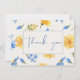 Este design floral de aquarela apresenta uma elegante disposição floral de aquarela com flores azuis e amarelas e padrão italiano de cores azul e branco na parte de trás. Uma coleção perfeita de cartões de agradecimento de chuve de noiva azul elegante e moderno no tema ela encontrou seu aperto principal. Mensagem para mim com qualquer ajuda ou pedidos personalizados.