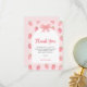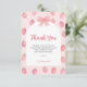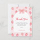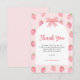 Este fofo cartão de agradecimento de chá de bebê de menina com tema de morango apresenta morangos em aquarela e um laço com tipografia em letra cursiva rosa em um fundo em arco. É facilmente personalizável. Aquarela Original © Michele Davies