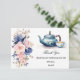 Apresentamos o nosso encantador Cartão de Agradecimento para Chá de Noiva com Tema de Chá Floral Azul e Rosa, apresentando uma imagem gráfica encantadora de flores rosa e azuis, um bule de chá azul e uma xícara de chá combinando. Este cartão é perfeito para expressar gratidão aos seus convidados após um chá de noiva com tema de chá ou celebração de chá da tarde. Com seu design elegante e modelo de mensagem de agradecimento incluso, é ideal para noivas que buscam transmitir apreço de forma elegante e sincera.