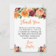 Cartão De Agradecimento Chá de Bebê de Outono em Burgundy e Floral Laranja