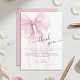 Cartão De Agradecimento Chá de Bebê em Água-forte Rosa Moderno com Laço