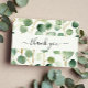 Expresse sua gratidão com estilo com este elegante cartão de agradecimento de folhagem de eucalipto, apresentando um design botânico em aquarela exuberante com delicados acentos em dourado. A rica folhagem verde emoldura lindamente a caligrafia em estilo manuscrito, criando um equilíbrio perfeito de sofisticação e charme natural. O fundo branco minimalista adiciona um toque limpo e moderno, tornando-o ideal para casamentos, chá de noiva, chá de bebê ou qualquer ocasião especial. Este design atemporal exala calor e apreço, tornando-o um souvenir significativo para seus convidados.