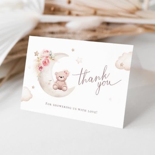 Cartão De Agradecimento Chá de Bebê Neutro Urso de Pelúcia Sobre a Lua
