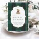 Este design de chá de bebê com ursinho de pelúcia vintage apresenta uma ilustração de ursinho pintada à mão emoldurada dentro de um rótulo decorativo elegante e colocada contra um fundo xadrez verde rico. Inspirado no estilo de berçário de herança e celebrações clássicas temáticas de polo, o design parece atemporal, refinado e cuidadosamente selecionado.