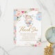 Cartão De Agradecimento Chá de Bebê Rosa com Flores para Festa de Aniversá