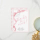 Este cartão de agradecimento duplo moderno e sofisticado para chá de noiva no estilo Coquette apresenta um laço de fita cor-de-rosa em aquarela suave com uma corrente de pérolas, letras em script rosa na frente, e um padrão de laços e pérolas com área transparente no verso para a mensagem pessoal da noiva - é o toque feminino perfeito para o dia especial da noiva antes do grande dia! Personalize facilmente o texto do cartão de agradecimento e faça-o seu. Role para cima para ver toda a coleção de convites, papelaria e decoração correspondente! ♥ Solicitações de design personalizado e perguntas são sempre bem-vindas - clique no botão "mensagem" ou envie um e-mail para: contact@figandlilyco.com. O design é criado com carinho pelos Fig and Lily Studios, enviando bênçãos e agradecimentos!
