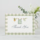 Cartão De Agradecimento Chá de Bebê Verde Sage Gingham Cultivado Localment